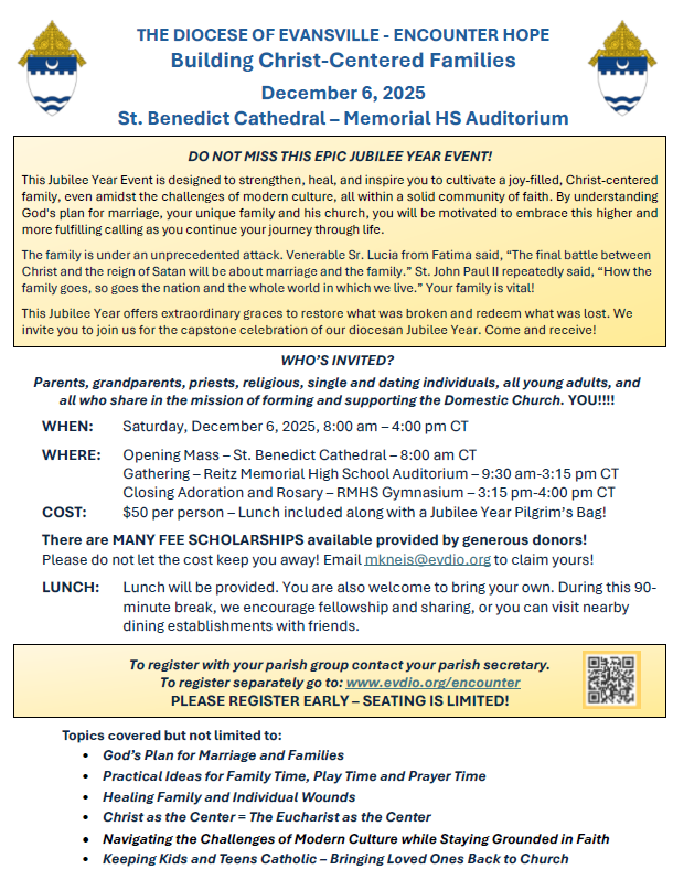 When the parish of St. John, Apostle and Evangelist, was founded in 1868, it was founded by a small but tightly knit group of German immigrant families. Through these intervening 150 years the parish has been a part of three dioceses and led by 10 bishops and over two dozen pastors. Not only this, but even the church building and its location have changed as well. Finally, this last decade has brought a demographic change as the once rural farming parish has found itself a blooming and growing meeting place of over 600 families as the Evansville suburbs have moved northward.